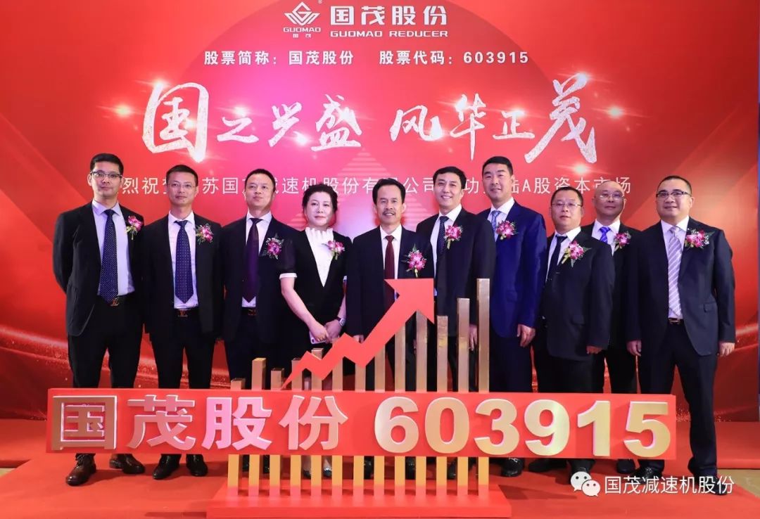 2019年6月14日上午9點30分,江蘇國茂減速機股份有限公司上市儀式于上海證券交易所舉行,宣告江蘇國茂減速機股份有限公司正式上市,股票簡稱為“國茂股份”,股票代碼為“603915”。這是國茂股份一個值得記載的歷史時刻,這也是一個新起點,國茂股份風帆高揚、破冰踏浪,開啟登陸資本市場的新征程!